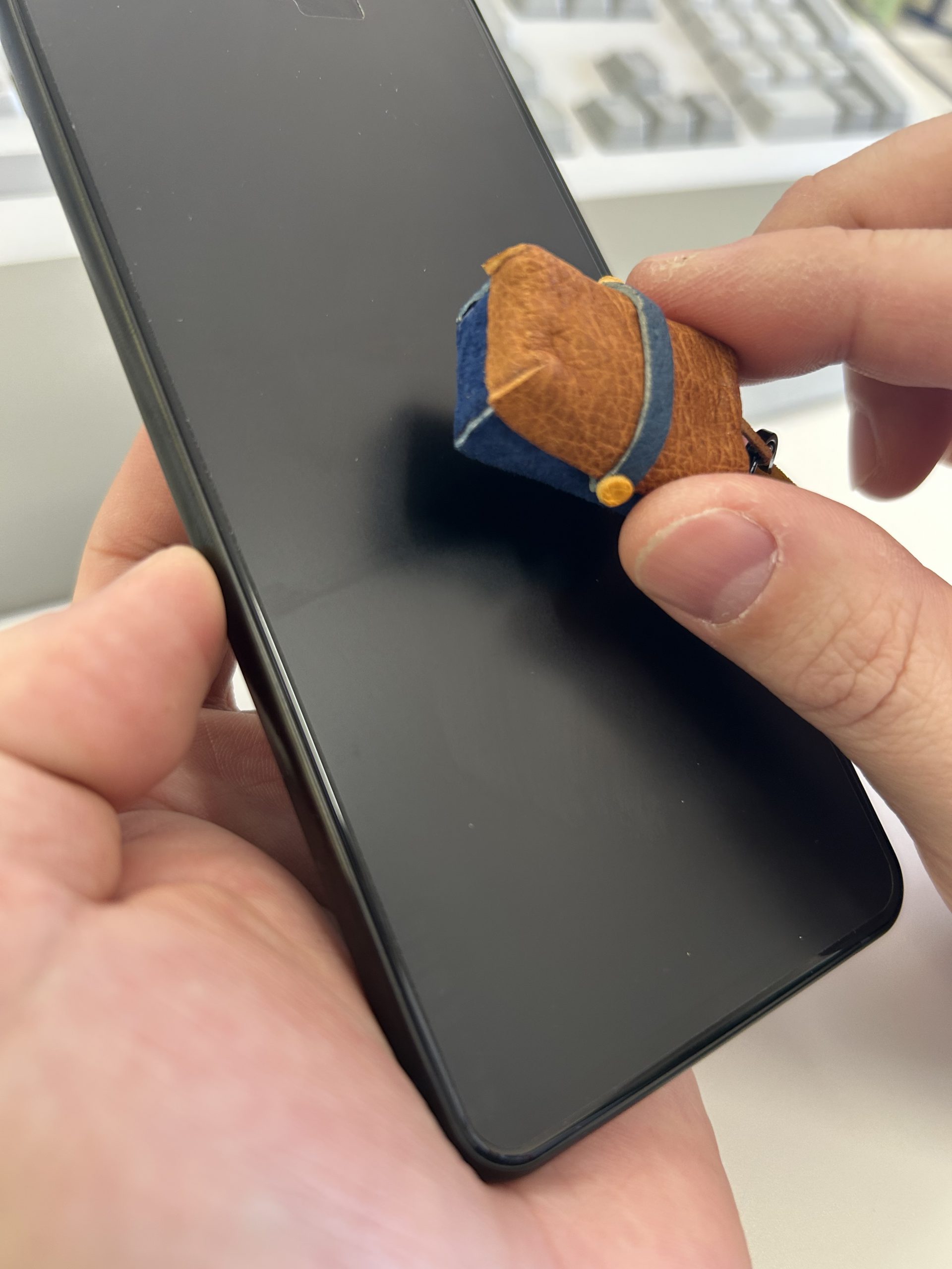イノシシの起毛状になっている裏の革を採用して製作しています。スマートホンなどの画面の汚れがすごくよく落ちます。